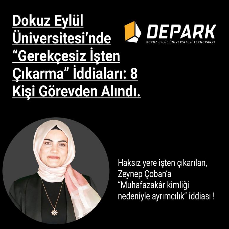 İzmir – Dokuz Eylül Üniversitesi bünyesinde faaliyet gösteren Teknopark’ta görev yapan bazı personelin, son dönemde herhangi bir gerekçe gösterilmeksizin işten çıkarıldığı iddiaları kamuoyuna yansıdı. İddiaya göre aralarında başarılı bir yönetici olan Zeynep Çoban’ın da bulunduğu toplam 8 kişi, iş akitlerinin sonlandırıldığını belirtti.